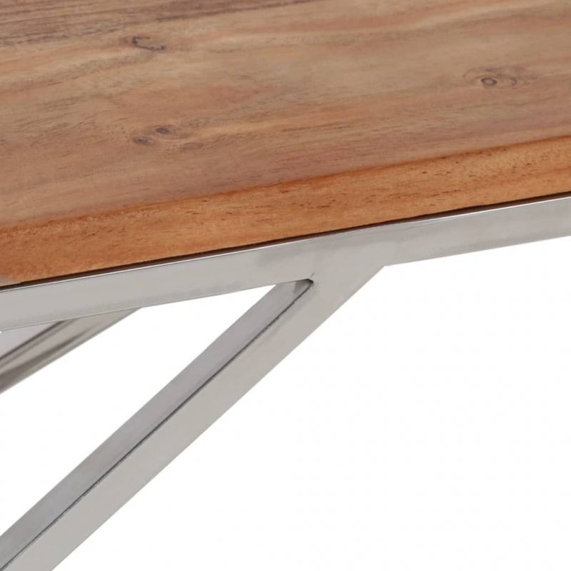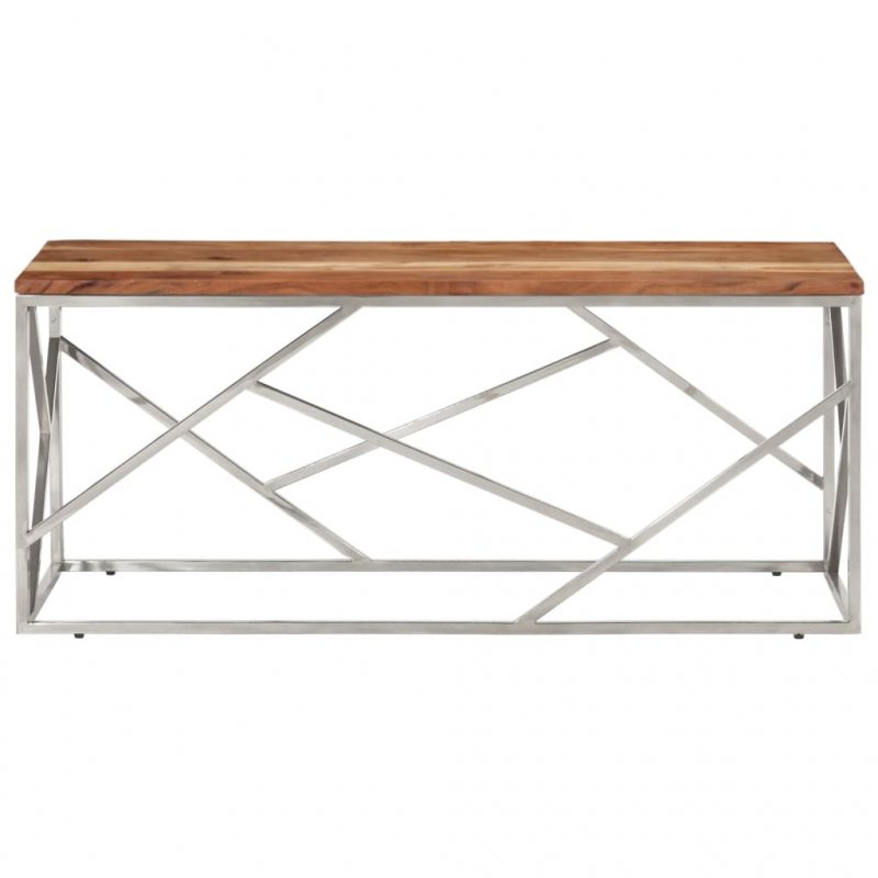 Mit seinem praktischen und optisch ansprechenden Design wird dieser Couchtisch ein echter Hingucker in deinem Zimmer sein. Tischplatte aus massivem Akazienholz: Die Tischplatte bietet einen sicheren und großzügigen Platz für Snacks, Getränke, Vasen, Obstschalen oder andere dekorative Gegenstände. Robust und stabil: Das Edelstahlgestell verleiht dem Wohnzimmertisch Robustheit und Stabilität. Pflegeleicht: Dank seiner schmutzabweisenden Oberfläche lässt sich der Akzenttisch leicht abwischen und reinigen, um stets brandneu auszusehen. Schlichtes Design: Der Sofatisch weist ein schlichtes und modernes Design aus, das zu jeder Einrichtung passt.