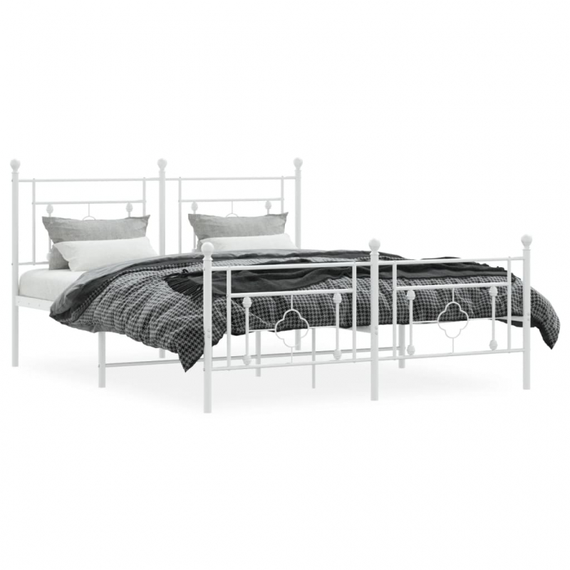 Bettgestell mit Kopf- und Fußteil Metall Weiß 160x200 cm