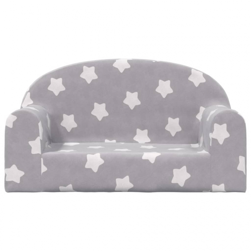 Kindersofa 2-Sitzer Hellgrau mit Sternen Weich Plüsch