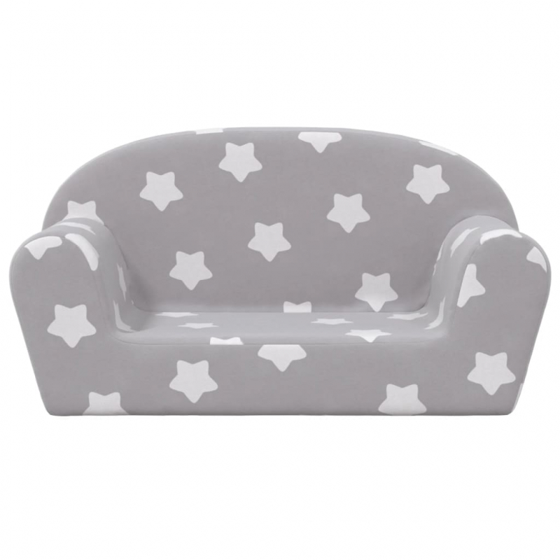 Kindersofa 2-Sitzer Hellgrau mit Sternen Weich Plüsch