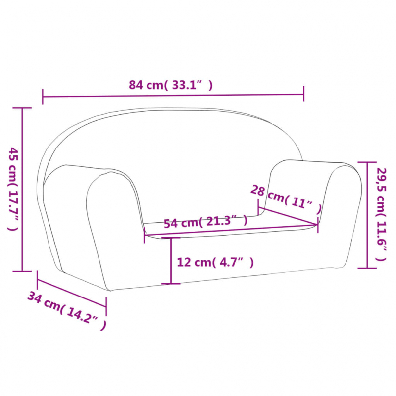 Dieses weiche 2-Sitzer-Kindersofa bietet den Kleinen einen bequemen Platz zum Lesen, Spielen oder Entspannen. Komfortables Material: Plüsch fühlt sich außergewöhnlich weich und angenehm an. Er ist auch langlebig und lässt sich einfach reinigen.Abnehmbarer Bezug: Der abnehmbare Bezug dieser Kindercouch lässt sich dank Klettverschluss einfach abnehmen und waschen.Weiches und komfortables Erlebnis: Die Kindercouch ist mit dickem Schaumstoff gepolstert und sorgt für ein weiches und gemütliches Gefühl. Außerdem bieten die Rückenlehne und die breiten Armlehnen sicheren Halt.Sicher und leicht: Das Kindersofa hat keine scharfen Ecken oder harten Kanten, um die Sicherheit deines Kindes zu gewährleisten. Gut zu wissen:Dieses Produkt ist vakuumverpackt, sodass es den Transport sicher übersteht. Der Artikel nimmt nach dem Auspacken von selbst seine Form an.