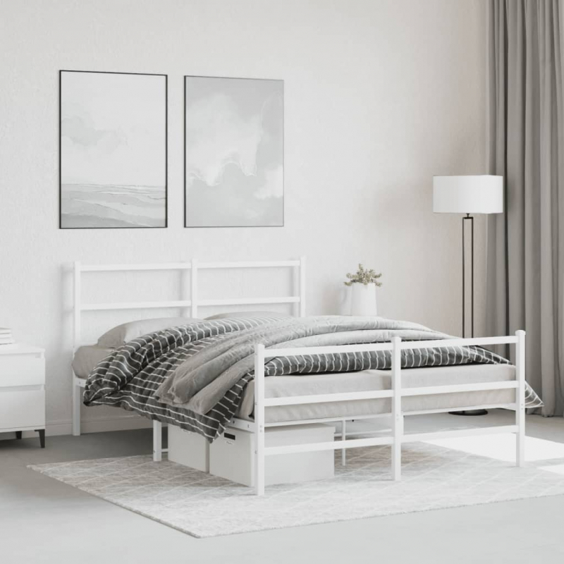 Bettgestell mit Kopf- und Fußteil Metall Weiß 135x190 cm