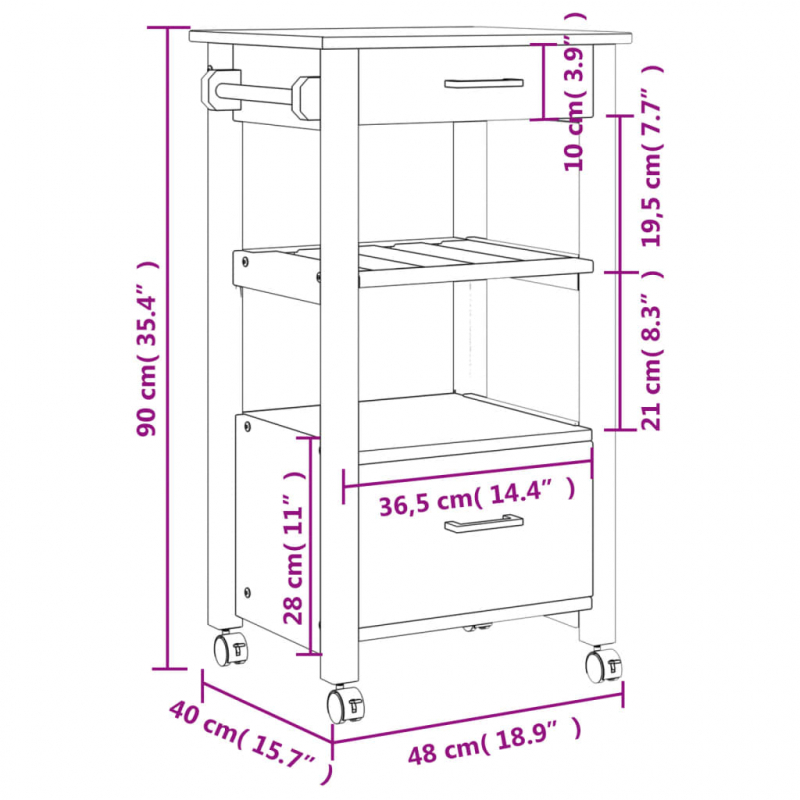Dieser Küchenwagen aus Holz verleiht deiner Küche eine unverwechselbare Vintage-Note und schafft zusätzlichen Stauraum! Langlebiges Material: Kiefer-Massivholz ist ein wunderschönes Naturmaterial. Kiefernholz hat eine gerade Maserung und die Aststellen verleihen dem Material sein typisches, rustikales Aussehen. Aus Kiefer-Massivholz gefertigt, ist dieser Küchenwagen langlebig und robust. Viel Stauraum: Dieser Küchenwagen ist mit einer Latten-Ablage und 2 Schubladen ausgestattet, die reichlich Platz für Flaschenhalter, Kochbücher und andere Küchenutensilien bieten. Auf der seitlichen Holzstange und den Metallhaken kannst du verschiedene Sachen griffbereit aufbewahren. Leicht zu bewegen: Dieser Servierwagen verfügt über 4 Räder, davon sind 2 feststellbar, sodass er sich jederzeit flexibel bewegen lässt und stabil steht. Vielseitige Anwendungsmöglichkeiten: Der Rollwagen kann in der Küche, im Wohnzimmer, im Badezimmer, im Arbeitszimmer und an anderen Orten verwendet werden. Du kannst hier deine Alltagsgegenstände, Gewürze, Toilettenartikel, Bücher und andere Dinge aufbewahren, um dein Zuhause aufgeräumt zu halten.
