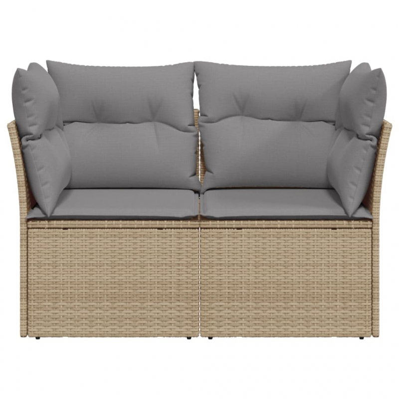 Gartensofa mit Kissen 2-Sitzer Beige Poly Rattan