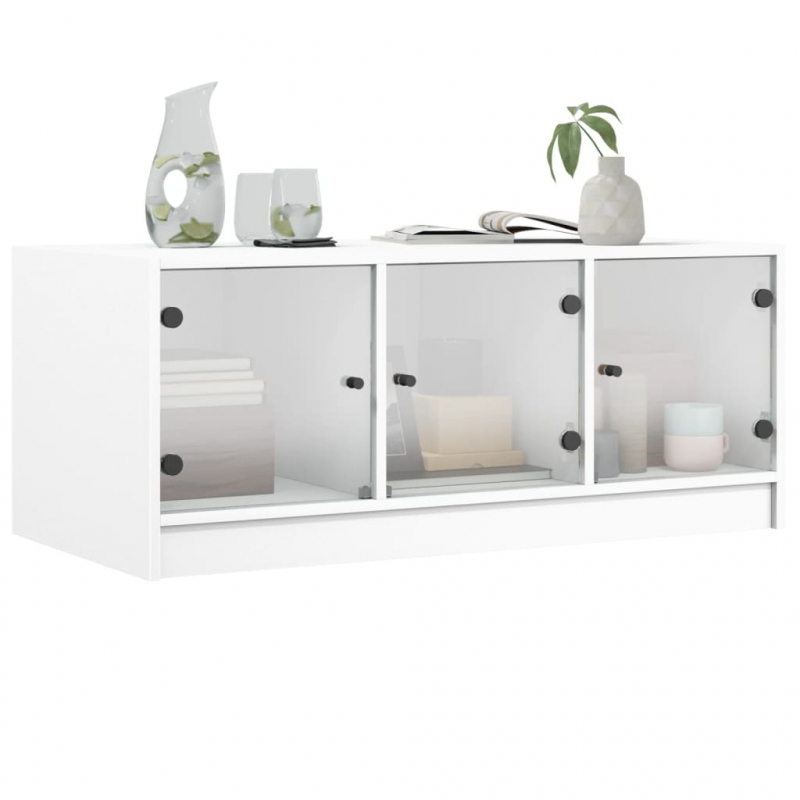 Couchtisch mit Glastüren Weiß 102x50x42 cm
