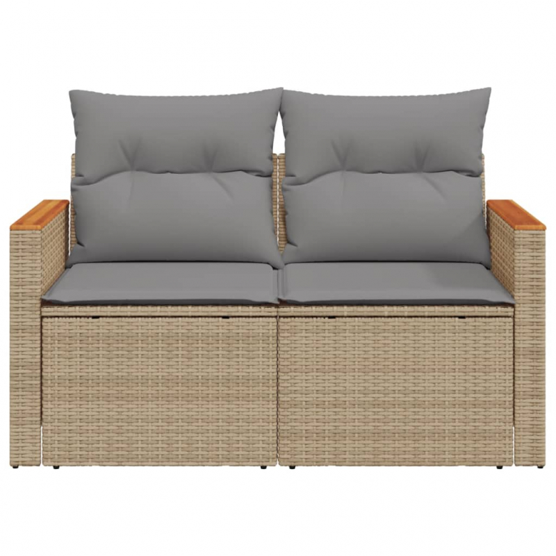 Gartensofa mit Kissen 2-Sitzer Beige Poly Rattan
