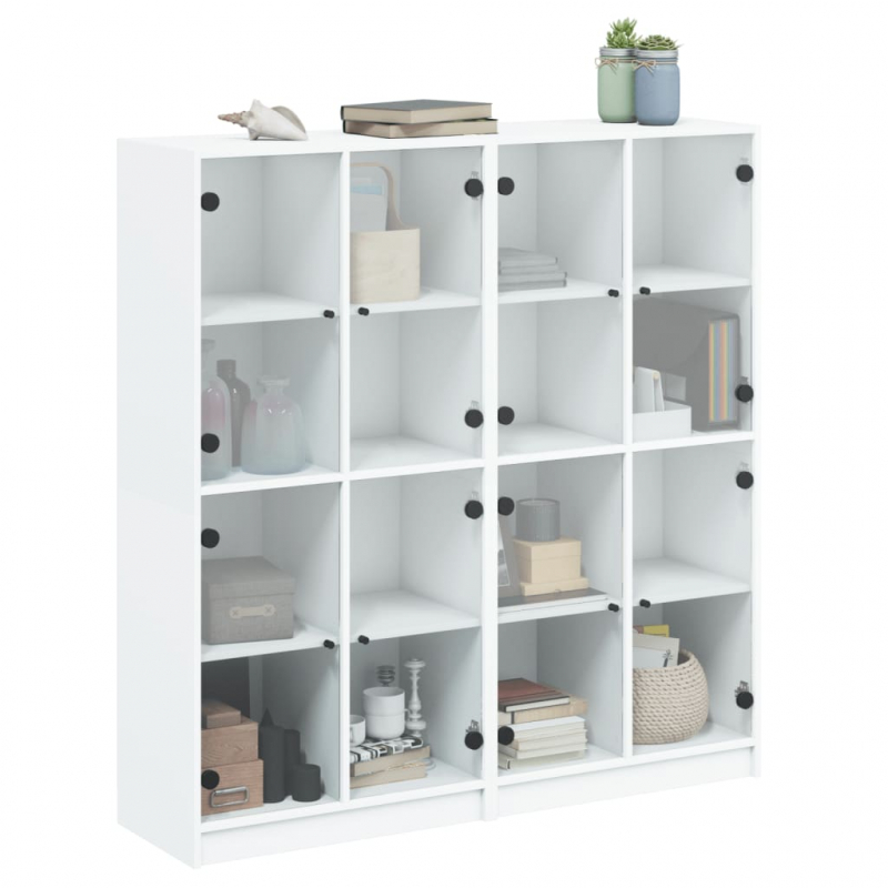 Dieses Bücherregal bietet eine ideale Lösung für die ordentliche Aufbewahrung deiner Bücher und verleiht deiner Einrichtung einen Hauch von modernem Charme. Langlebiges und robustes Material: Holzwerkstoff ist ein Material von außergewöhnlicher Qualität mit glatter Oberfläche, das sich durch Festigkeit, Stabilität und Feuchtigkeitsbeständigkeit auszeichnet.Viel Stauraum: Das Bücherregal bietet reichlich Stauraum, um deine Sammlung von Büchern, Zeitschriften und Dokumenten ordentlich aufzubewahren.Stabile und robuste Oberplatte: Die Oberplatte bietet den perfekten Platz, um Dekoartikel, Bilderrahmen und Topfpflanzen zur Schau zu stellen.Praktisches Design: Schütze deine wichtigsten Sachen vor Staub, indem du sie hinter den Glastüren verstaust. Dank der schwarzen Griffe lässt sich das Bücherregal leicht öffnen. Achtung:Um ein Umkippen zu vermeiden, sollte dieses Produkt mit der mitgelieferten Wandhalterung gesichert werden.