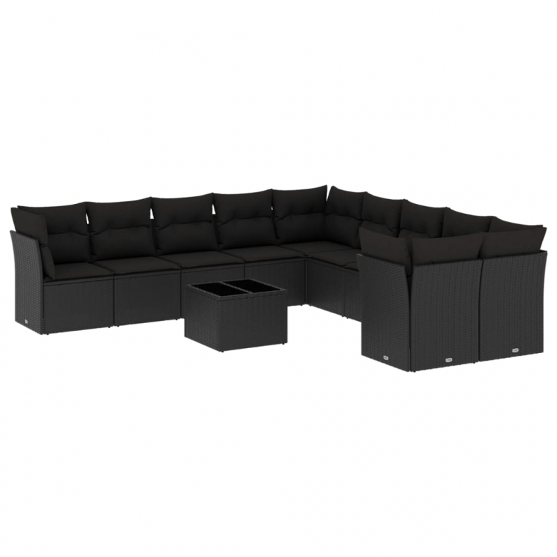 11-tlg. Garten-Sofagarnitur mit Kissen Schwarz Poly Rattan