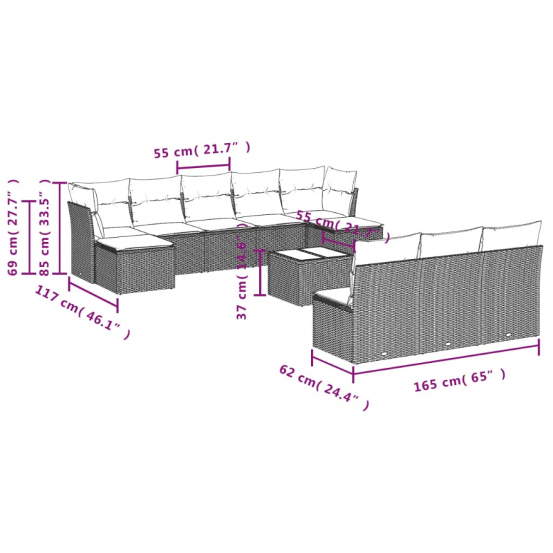 Diese Garten-Sofagarnitur ist die perfekte Ergänzung zu deinem Garten, deiner Terrasse oder deinem Innenhof. Sie bietet einen bequemen und einladenden Platz, um mit Familie und Freunden zu plaudern oder dich einfach nur zu entspannen und das Leben im Freien zu genießen. Langlebiges Material: PE-Rattan, auch als Poly Rattan bekannt, ist ein robustes, pflegeleichtes synthetisches Material, das die Optik von natürlichem Rattan aufweist. Es kennzeichnet sich durch ein geringes Eigengewicht und lässt sich einfach reinigen. Aufgrund seiner Haltbarkeit und Witterungsbeständigkeit wird es häufig bei der Herstellung von Gartenmöbeln verwendet.Stauraum mit wasserfestem Beutel: Jedes Gartensofa verfügt über ein Staufach unter der Sitzfläche, das mit einem wasserfesten Beutel zur Aufbewahrung von Kissen, Spielzeug und anderen Gegenständen versehen ist. Die Kissen sind mit Bezügen versehen und lassen sich mit Klettverschlüssen fest und sicher an den Sofas befestigen.Tischplatte aus Glas: Die Tischplatte des Gartentisches besteht aus starkem und langlebigem Hartglas, sodass sie leicht mit einem feuchten Tuch gereinigt werden kann und deinem Außenbereich einen Hauch von Eleganz verleiht.Abnehmbarer und waschbarer Bezug: Diese Sitzkissen verfügen über abnehmbare Bezüge für einfaches Waschen und Pflegen.Modulares Design: Dank des modularen Designs lassen sich die Gartenmöbel völlig flexibel und einfach umstellen, um deinen Außenbereich ganz individuell zu gestalten. Gut zu wissen:Wir empfehlen dir, deine Gartenmöbel mit einer wasserdichten Hülle zu schützen, um lange Zeit eine ansprechende Optik aufzuweisen.