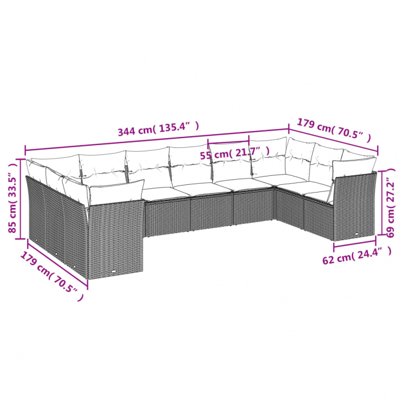 Diese Garten-Sofagarnitur ist die perfekte Ergänzung zu deinem Garten, deiner Terrasse oder deinem Innenhof. Sie bietet einen bequemen und einladenden Platz, um mit Familie und Freunden zu plaudern oder dich einfach nur zu entspannen und das Leben im Freien zu genießen. Langlebiges Material: PE-Rattan, auch als Poly Rattan bekannt, ist ein robustes, pflegeleichtes synthetisches Material, das die Optik von natürlichem Rattan aufweist. Es kennzeichnet sich durch ein geringes Eigengewicht und lässt sich einfach reinigen. Aufgrund seiner Haltbarkeit und Witterungsbeständigkeit wird es häufig bei der Herstellung von Gartenmöbeln verwendet.Stauraum mit wasserfestem Beutel: Jedes Gartensofa verfügt über ein Staufach unter der Sitzfläche, das mit einem wasserfesten Beutel zur Aufbewahrung von Kissen, Spielzeug und anderen Gegenständen versehen ist. Die Kissen sind mit Bezügen versehen und lassen sich mit Klettverschlüssen fest und sicher an den Sofas befestigen.Abnehmbarer und waschbarer Bezug: Diese Sitzkissen verfügen über abnehmbare Bezüge für einfaches Waschen und Pflegen.Modulares Design: Dank des modularen Designs lassen sich die Gartenmöbel völlig flexibel und einfach umstellen, um deinen Außenbereich ganz individuell zu gestalten. Gut zu wissen:Wir empfehlen dir, deine Gartenmöbel mit einer wasserdichten Hülle zu schützen, um lange Zeit eine ansprechende Optik aufzuweisen.