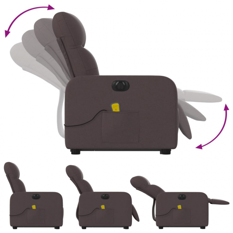 Lehne dich zurück und entspanne dich in diesem äußerst bequemen elektrischen Massagesessel mit Aufstehhilfe! Elektrische Aufstehhilfe: Dieser Relaxsessel ist mit einem Elektromotor zum Anheben ausgestattet. Dank der Aufstehhilfe, die den gesamten Sessel nach oben bringt, kannst du ganz einfach auf Knopfdruck aufstehen, ohne deinen Rücken und deine Knie zu belasten.Elektrische Liegefunktion: Dieser Relaxsessel ist mit einem Elektromotor ausgestattet, der Fußstütze und Rückenlehne durch einfaches Drücken des seitlichen Knopfes automatisch in jede gewünschte Position bringt. Diese Funktion ermöglicht eine maximale Neigung von 135 Grad. Darüber hinaus lässt sich die Rückenlehne auf Knopfdruck automatisch in die ursprünglichen Position zurückbringen.Vibrationsfunktion: Dank der 6 Massagepunkte genießt du eine gezielte Massage. Zudem lassen sich verschiedene Massageprogramme über die mitgelieferte Handsteuerung auswählen. Die Massagefunktion wird über den USB-Anschluss betrieben, der eine zertifizierte 5-V-USB-Stromquelle erfordert (nicht im Lieferumfang enthalten).Bequemes Sitzerlebnis: Die dick gepolsterte Sitzfläche, die Rückenlehne und die breiten Armlehnen sorgen für ein behagliches und wohliges Sitzgefühl. Der Bezug aus Stoff weist eine schlichte und saubere Optik auf und ist auch atmungsaktiv und langlebig.Praktische Seitentasche: Dieser Sessel verfügt über eine Seitentasche, in der du deine Fernbedienung oder andere wichtige Sachen griffbereit aufbewahren kannst.