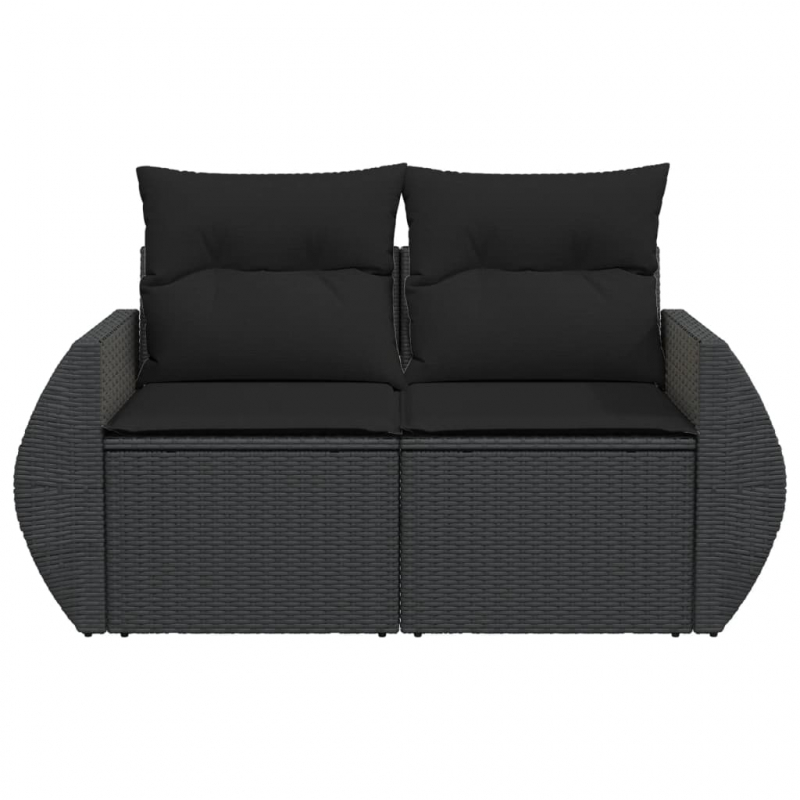 Gartensofa mit Kissen 2-Sitzer Schwarz Poly Rattan