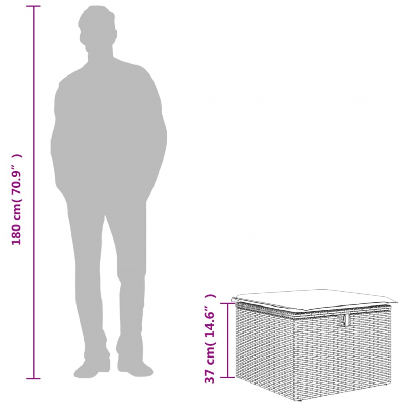 Gartenhocker mit Kissen Grau 55x55x37 cm Poly Rattan