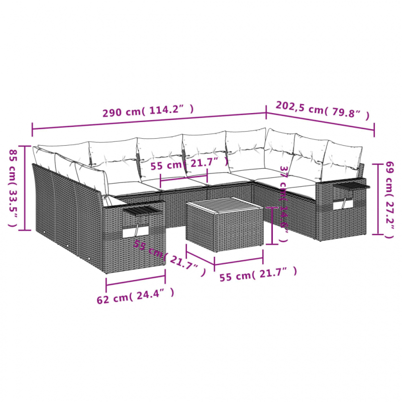 • 9 x Sitzkissen mit abnehmbarem und waschbarem Bezug