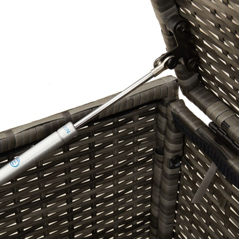 Diese Gartenbox ist ideal für die Aufbewahrung von Kissen, Auflagen, Decken, Spielzeug und anderen Gegenständen im Garten oder auf der Terrasse. Langlebiges Material: PE-Rattan, auch als Poly Rattan bekannt, ist ein robustes, pflegeleichtes synthetisches Material, das die Optik von natürlichem Rattan aufweist. Es kennzeichnet sich durch ein geringes Eigengewicht und lässt sich einfach reinigen. Aufgrund seiner Haltbarkeit und Witterungsbeständigkeit wird es häufig bei der Herstellung von Gartenmöbeln verwendet.Staufach mit wasserfestem Beutel: Das Staufach ist mit einem wasserfesten Beutel zur Aufbewahrung von Kissen, Spielzeug und anderen Gegenständen versehen. Der Innenbeutel lässt sich mit Klettverschlüssen sicher und stabil am Möbelstück befestigen.Sicheres und einfaches Öffnen und Schließen: Die Gasfeder erleichtert das Öffnen des Deckels und verhindert das Einklemmen der Finger.Robuster und stabiler Rahmen: Dank des pulverbeschichteten Stahlrahmens ist das Möbelstück robust, stabil und für den täglichen Einsatz im Außenbereich geeignet. Gut zu wissen:Wir empfehlen dir, deine Gartenmöbel mit einer wasserdichten Hülle zu schützen, um lange Zeit eine ansprechende Optik aufzuweisen.