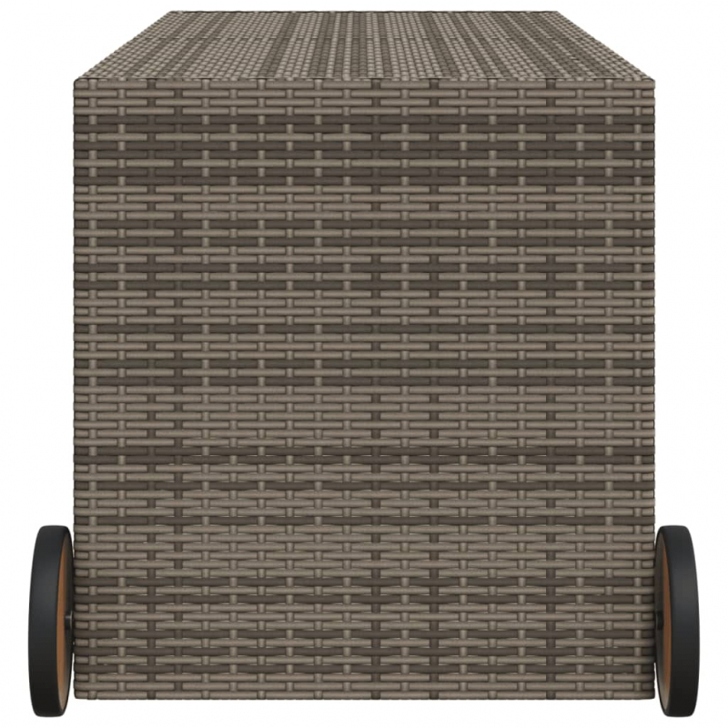 Diese Truhe eignet sich ideal, um Kissen, Auflagen, Decken und andere Sachen im Garten oder auf der Terrasse aufzubewahren. Langlebiges Material: PE-Rattan, auch als Poly Rattan bekannt, ist ein robustes, pflegeleichtes synthetisches Material, das die Optik von natürlichem Rattan aufweist. Es kennzeichnet sich durch ein geringes Eigengewicht und lässt sich einfach reinigen. Aufgrund seiner Haltbarkeit und Witterungsbeständigkeit wird es häufig bei der Herstellung von Gartenmöbeln verwendet.Staufach mit wasserfestem Beutel: Das Staufach ist mit einem wasserfesten Beutel zur Aufbewahrung von Kissen und anderen Gegenständen versehen. Der Innenbeutel lässt sich mit Klettverschlüssen sicher und stabil am Möbelstück befestigen.Sicheres und einfaches Öffnen und Schließen: Die Gasfeder erleichtert das Öffnen des Deckels und verhindert das Einklemmen der Finger.Einfaches Umstellen: Die Gartentruhe ist mit 2 Rollen und einem seitlichen Griff ausgestattet und lässt sich daher ganz einfach umher verschieben.Robuster und stabiler Rahmen: Dank des pulverbeschichteten Stahlrahmens ist das Möbelstück robust, stabil und für den täglichen Einsatz im Außenbereich geeignet. Gut zu wissen:Wir empfehlen dir, deine Gartenmöbel mit einer wasserdichten Hülle zu schützen, um lange Zeit eine ansprechende Optik aufzuweisen.