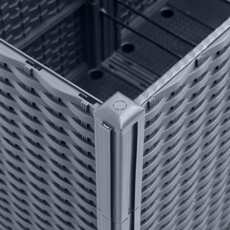 Dieser Blumenkübel ist eine ausgezeichnete Wahl für Kletterpflanzen im Garten oder auf der Terrasse. Langlebiges Material: Polypropylen ist ein beliebter Kunststoff, der bei der Herstellung von Gartenmöbeln häufig verwendet wird. Er ist leicht, robust und stoßfest.Großzügiges Fassungsvermögen: Der Pflanzkübel bietet viel Platz für den Anbau von Gemüse, Blumen und anderen Pflanzen.Praktisches Design: Die ideale Bodenschicht bewahrt Feuchtigkeit und ermöglicht eine leichte Drainage. Modulares Design: Dieses Pflanzgefäß besteht aus 7 Pflanzkästen, die sich je nach Bedarf frei miteinander kombinieren lassen.Ansprechende Rattan-Optik: Mit seiner ansprechenden Rattan-Optik verleiht der Pflanzkübel deinem Außenbereich eine elegante Note.