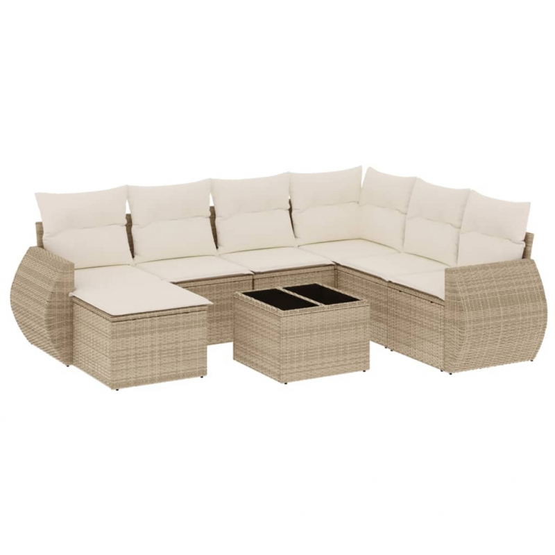 8-tlg. Garten-Sofagarnitur mit Kissen Beige Poly Rattan