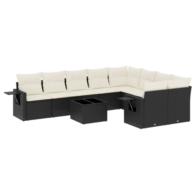 10-tlg. Garten-Sofagarnitur mit Kissen Schwarz Poly Rattan