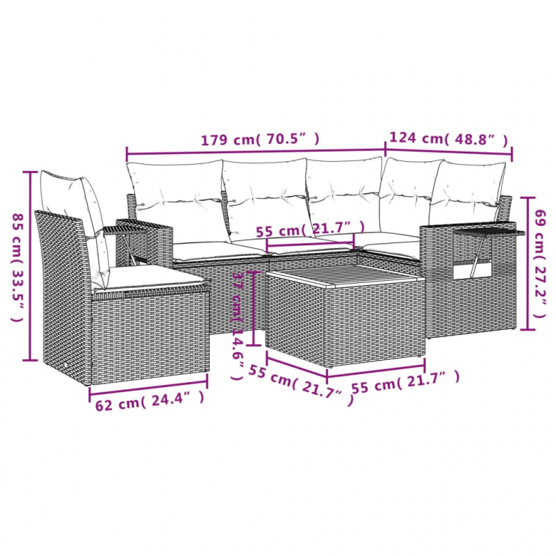 6-tlg. Garten-Sofagarnitur mit Kissen Beige Poly Rattan