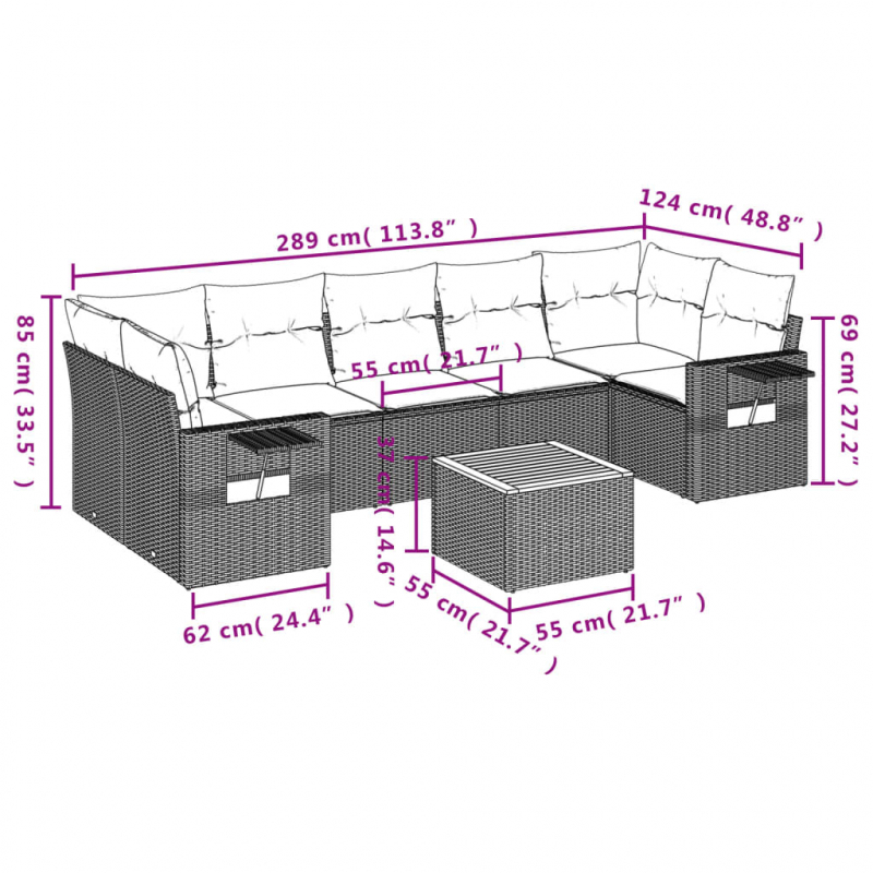 8-tlg. Garten-Sofagarnitur mit Kissen Beige Poly Rattan