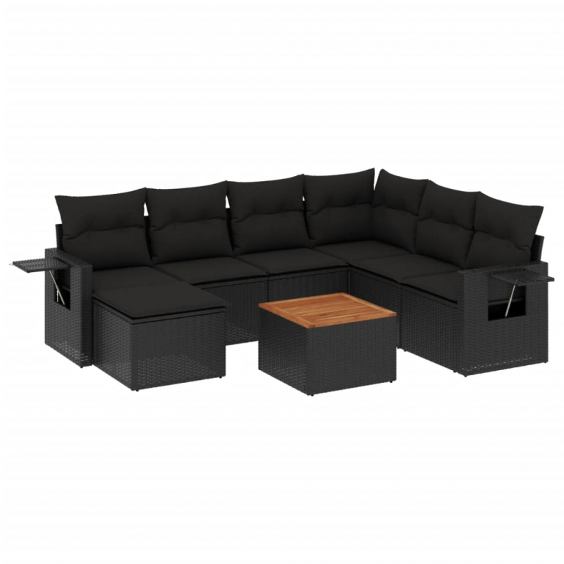 8-tlg. Garten-Sofagarnitur mit Kissen Schwarz Poly Rattan