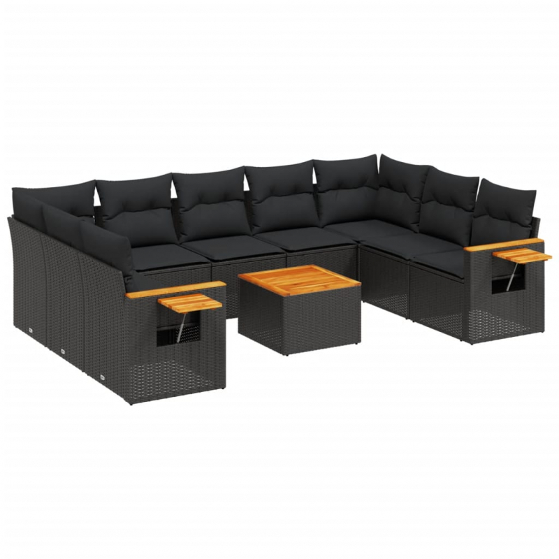 10-tlg. Garten-Sofagarnitur mit Kissen Schwarz Poly Rattan