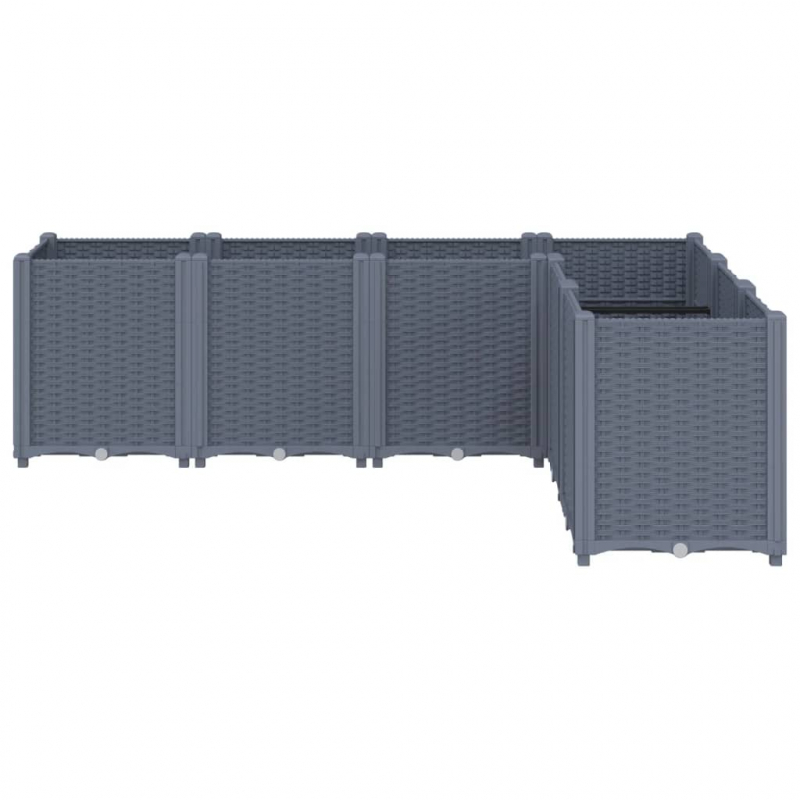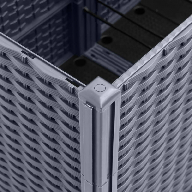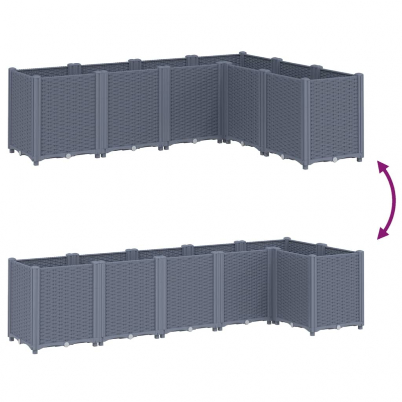 Dieser Blumenkübel ist eine ausgezeichnete Wahl für Kletterpflanzen im Garten oder auf der Terrasse. Langlebiges Material: Polypropylen ist ein beliebter Kunststoff, der bei der Herstellung von Gartenmöbeln häufig verwendet wird. Er ist leicht, robust und stoßfest.Großzügiges Fassungsvermögen: Der Pflanzkübel bietet viel Platz für den Anbau von Gemüse, Blumen und anderen Pflanzen.Praktisches Design: Die ideale Bodenschicht bewahrt Feuchtigkeit und ermöglicht eine leichte Drainage. Modulares Design: Dieses Pflanzgefäß besteht aus 6 Blumenkästen, die sich je nach Bedarf frei miteinander kombinieren lassen.Ansprechende Rattan-Optik: Mit seiner ansprechenden Rattan-Optik verleiht der Pflanzkübel deinem Außenbereich eine elegante Note.