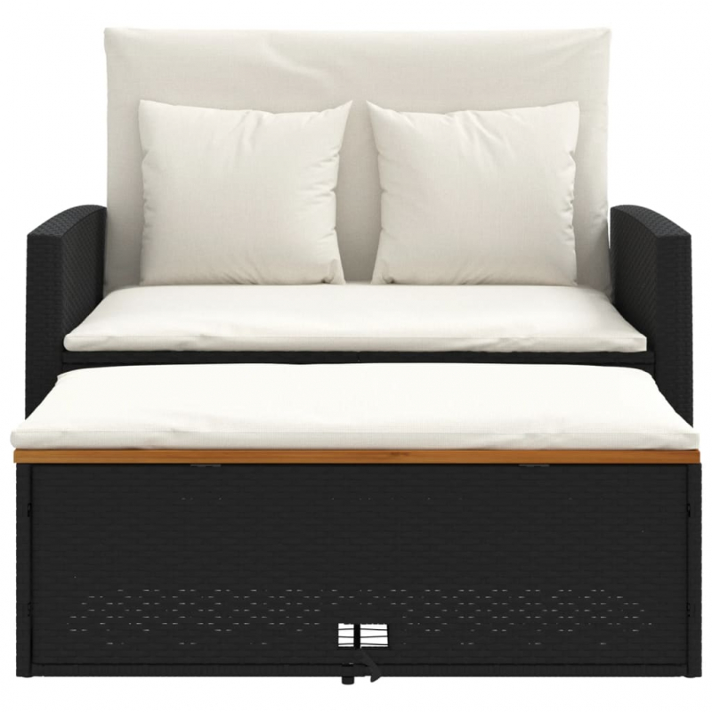 Entspanne dich und genieße die Natur auf diesem bequemen 2-Sitzer-Gartensofa! Langlebiges Material: PE-Rattan, auch als Poly Rattan bekannt, ist ein robustes, pflegeleichtes synthetisches Material, das die Optik von natürlichem Rattan aufweist. Es kennzeichnet sich durch ein geringes Eigengewicht und lässt sich einfach reinigen. Aufgrund seiner Haltbarkeit und Witterungsbeständigkeit wird es häufig bei der Herstellung von Gartenmöbeln verwendet. Vielseitig einsetzbar: Dieses Möbelstück lässt sich sowohl als 2-Sitzer-Bank als auch als Schlafsofa einsetzen. Du kannst es durch Zurückneigen der Rückenlehne und Herausziehen des Hockers von unter der Bank ganz einfach in ein Bett verwandeln. Die Stützplatten hinder den Rückenlehnen erhöhen die Stabilität des Bettes. Vielseitiger Hocker: Der Outdoor-Hocker lässt sich als Sitzgelegenheit oder Fußhocker verwenden, kann aber auch als Couchtisch für Getränke, Snacks oder Dekorationen dienen. Darüber hinaus ist der Hocker mit einem Staufach versehen, sodass sich Kissen und Auflagen platzsparend unter dem Sofa verstauen lassen. Bequemes Sitzerlebnis: Dieser Gartensessel mit dick gepolsterten Kissen bietet ein angenehmes Sitzgefühl. Abnehmbarer und waschbarer Bezug: Diese Sitzkissen verfügen über abnehmbare Bezüge für einfaches Waschen und Pflegen. Gut zu wissen:Wir empfehlen dir, deine Gartenmöbel mit einer wasserdichten Hülle zu schützen, um lange Zeit eine ansprechende Optik aufzuweisen.