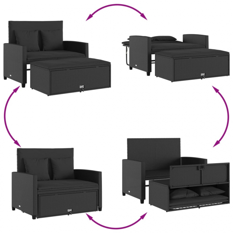 Gartensofa mit Kissen 2-Sitzer Schwarz Poly Rattan