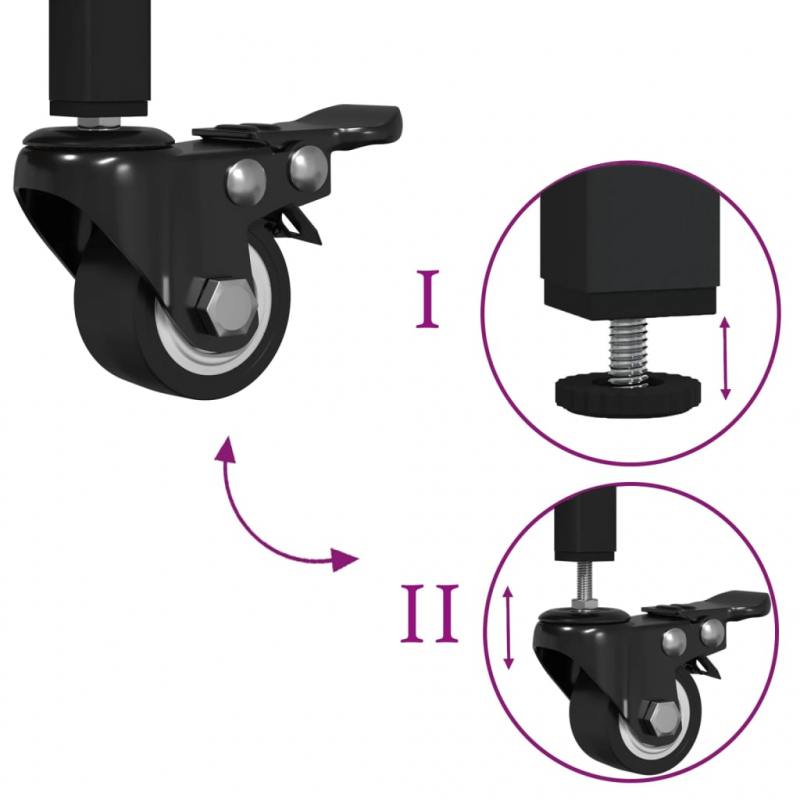 • Mit 4 Rollen, davon 2 mit Bremsen