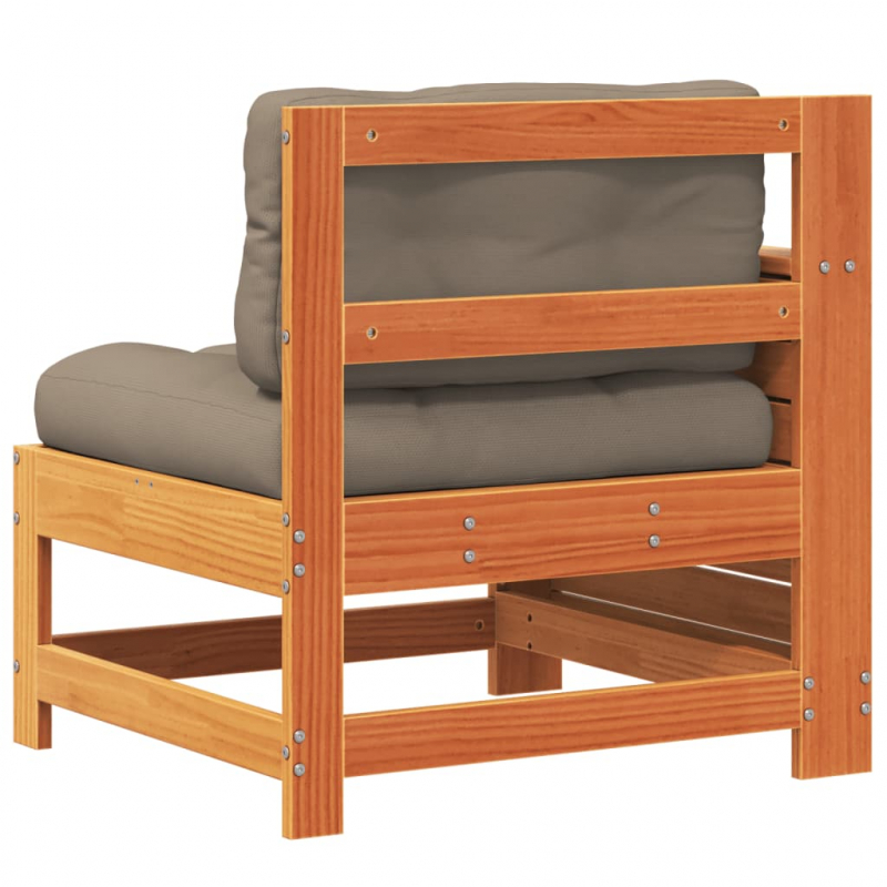 Gartensofa mit Armlehne und Kissen Wachsbraun Massivholz Kiefer