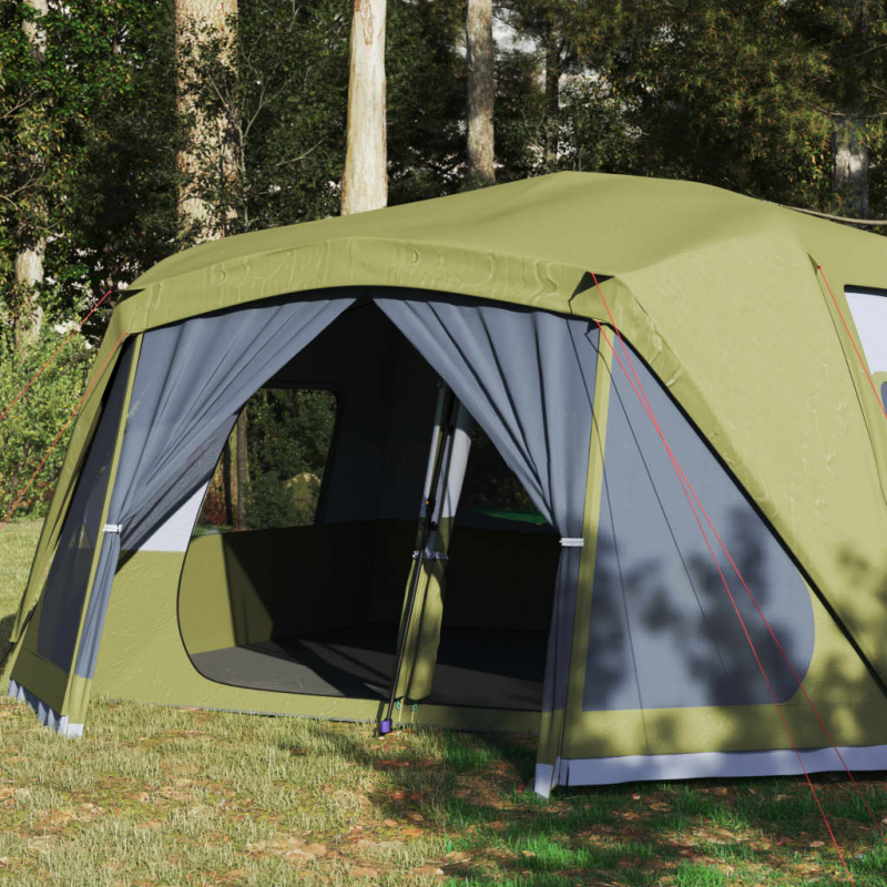 Dieses moderne Familienzelt schützt vor unangenehmen Wetter und bietet einen komfortablen Platz bei Abenteuern. Rundum wasserdichtes Design: Aus Polyester mit PU-Beschichtung gefertigt, ist dieses Campingzelt wasser- und winddicht. Die versiegelten Nähte verhindern effektiv das Eindringen von Regenwasser, während die strapazierfähige Bodenplane für ein trockenes und komfortables Interieur sorgt. Quick-Release-System: Dank des Quick-Release-Systems lässt sich das Zelt mühelos aufbauen! Lege das Zelt auf den Boden, ziehe das vormontierte Gestänge heraus, bis es einrastet, und schon ist das Zelt einsatzbereit!Gute Belüftung und Insektenschutz: Die Netzwände bieten nicht nur eine hervorragende Belüftung, sondern halten auch Insekten effektiv fern, um den Benutzern ein komfortables und insektenfreies Erlebnis zu bieten.Praktischer Zugang zum Stromkabel: Dank des E-Anschlusses kannst du ganz einfach ein Verlängerungskabel von einer externen Stromquelle an dein Zelt anschließen.Abnehmbares Überzelt: Das abnehmbare Überzelt lässt sich an der Zeltoberseite befestigen, um Wetterschutz zu bieten und Privatsphäre zu schaffen. Achtung:Halte alle Flammen und Wärmequellen von diesem Zeltstoff fern.