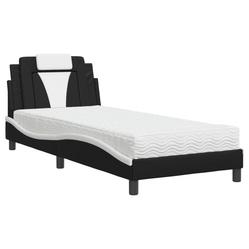 Bett mit Matratze Schwarz und Weiß 90x190 cm Kunstleder