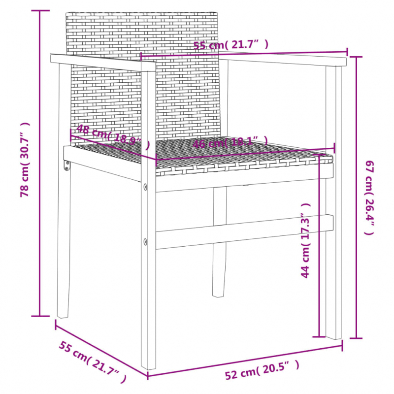 Entspanne dich und genieße die Natur in diesen bequemen Gartenstühlen! Langlebiges Material: PE-Rattan, auch als Poly Rattan bekannt, ist ein robustes, pflegeleichtes synthetisches Material, das die Optik von natürlichem Rattan aufweist. Es kennzeichnet sich durch ein geringes Eigengewicht und lässt sich einfach reinigen. Aufgrund seiner Haltbarkeit und Witterungsbeständigkeit wird es häufig bei der Herstellung von Gartenmöbeln verwendet.Bequemes Sitzerlebnis: Mit einer Rückenlehne und Armlehnen versehen, bietet das Möbelstück höchsten Sitzkomfort.Robustes und stabiles Gestell: Dank des Gestells aus Holz und pulverbeschichtetem Stahl ist das Möbelstück robust, stabil und für den täglichen Einsatz im Außenbereich geeignet. Gut zu wissen:Wir empfehlen dir, deine Gartenmöbel mit einer wasserdichten Hülle zu schützen, um lange Zeit eine ansprechende Optik aufzuweisen.