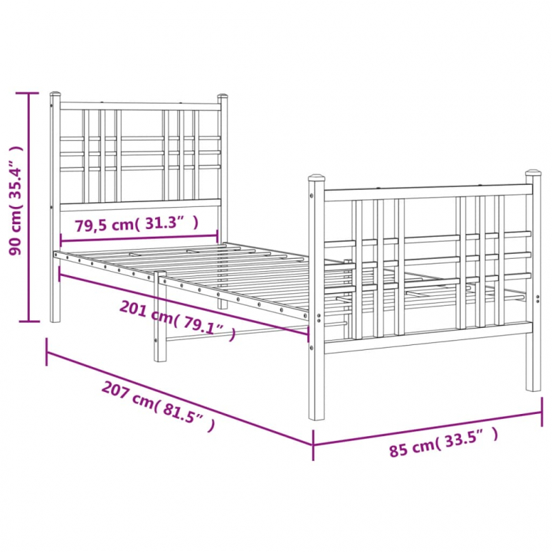 Bettgestell mit Kopf- und Fußteil Metall Weiß 80x200 cm