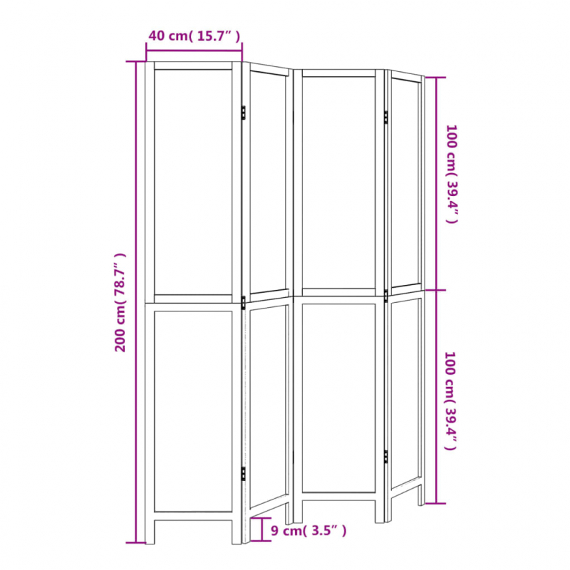 4-tlg. Raumteiler Weiß Massivholz Paulownia