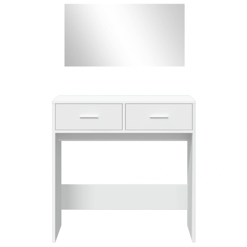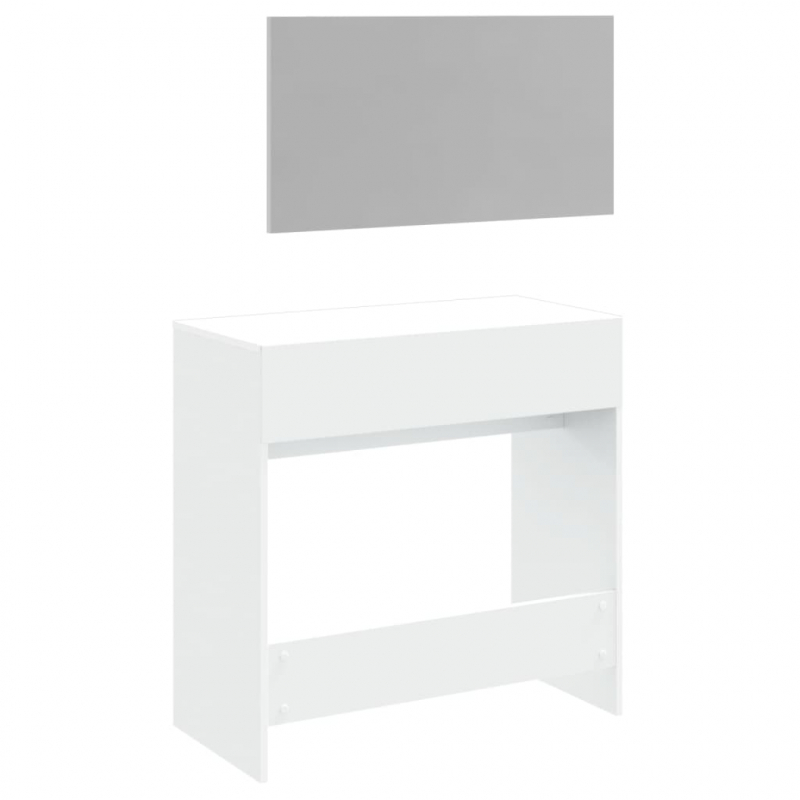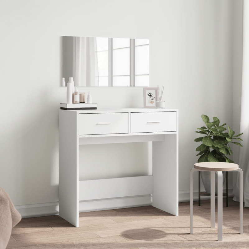 Mit seinen raffinierten geraden Linien und seiner symmetrischen Form wird dieser Schminktisch mit Sicherheit alle Blicke auf sich ziehen! Langlebiges und robustes Material: Holzwerkstoff ist ein Material von außergewöhnlicher Qualität mit glatter Oberfläche, das sich durch Festigkeit, Stabilität und Feuchtigkeitsbeständigkeit auszeichnet.Allzweckspiegel: Der Schminktisch mit Spiegel eignet sich perfekt für deine tägliche Schönheitsroutine. Der Spiegel ermöglicht es dir, deine Gesichtshaut zu pflegen und auch dein Make-up aufzutragen!Viel Stauraum: Der Schminktisch bietet reichlich Platz, um Make-up, Schmuck und Schönheitsprodukte griffbereit aufzubewahren.Modernes Design: Durch klare Linien, minimalistischen Look und modernes Design fügt er sich harmonisch in deine Inneneinrichtung ein. Achtung:Um ein Umkippen zu vermeiden, sollte dieses Produkt mit der mitgelieferten Wandhalterung gesichert werden.