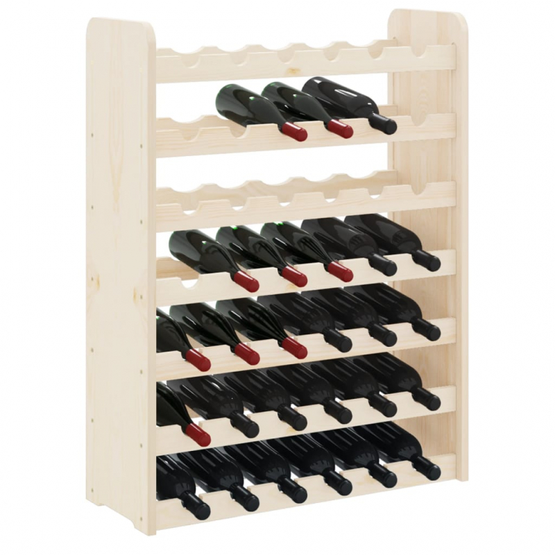 In diesem Weinregal aus Holz können Sie Ihre Weine stilvoll aufbewahren, altern lassen und zur Schau stellen! Massives Kiefernholz: Dieses Weinregal ist aus Kiefern-Massivholz gefertigt. Massives Kiefernholz ist ein wunderschönes Naturmaterial. Kiefernholz weist eine gerade Maserung auf und die Aststellen verleihen dem Holz seine charakteristische, rustikale Optik.Reichlich Stauraum: Das Weinregal besitzt 7 Ebenen, auf denen bis zu 42 Flaschen Wein Platz finden. Jede Ebene kann 6 Flaschen aufnehmen.Wellen-Design: Das Wellen-Design ermöglicht dem Korken feucht zu bleiben, was den Wein länger haltbar macht.Breite Anwendungen: Das Weinregal findet leicht Platz in der Küche, Speisekammer, einem Schrank, dem Esszimmer, Keller, auf der Arbeitsplatte, in der Bar usw. Achtung:Um ein Umkippen zu verhindern, muss dieses Produkt mit einer Wandhalterung (nicht im Lieferumfang enthalten) gesichert werden.