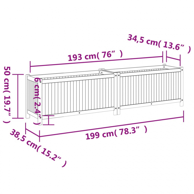 Pflanzkübel mit Einlage 199x38,5x50 cm Massivholz Akazie