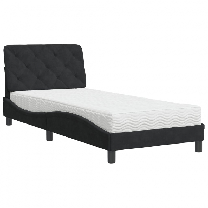 Bett mit Matratze Schwarz 90x200 cm Samt