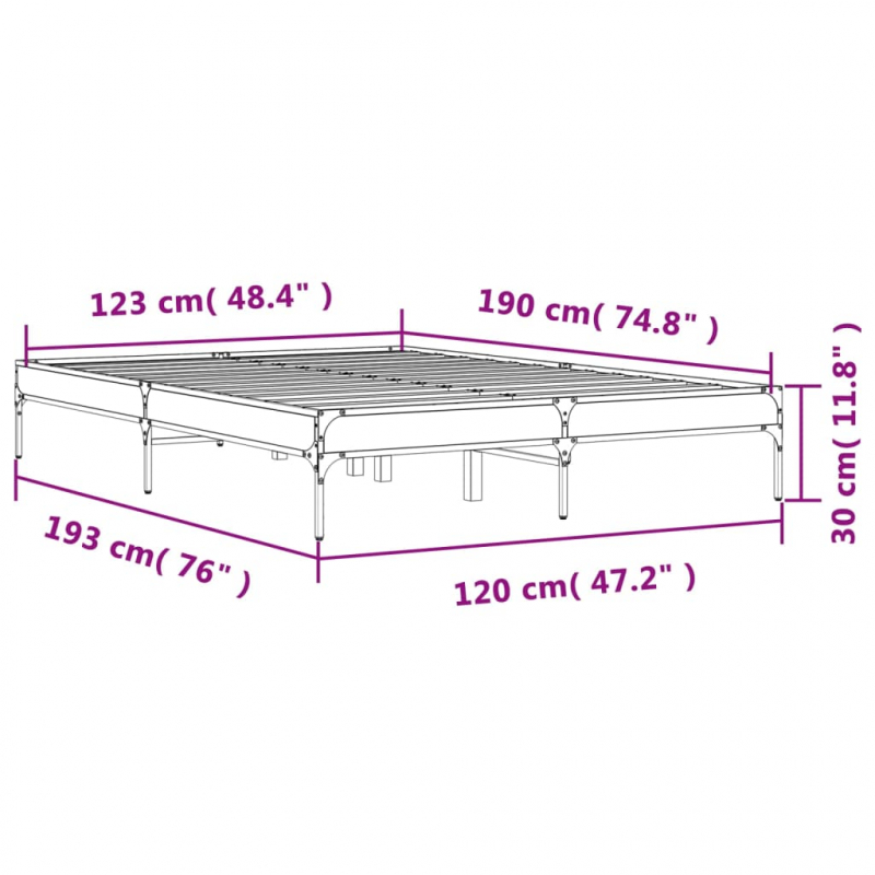Bettgestell Grau Sonoma 120x190 cm Holzwerkstoff und Metall