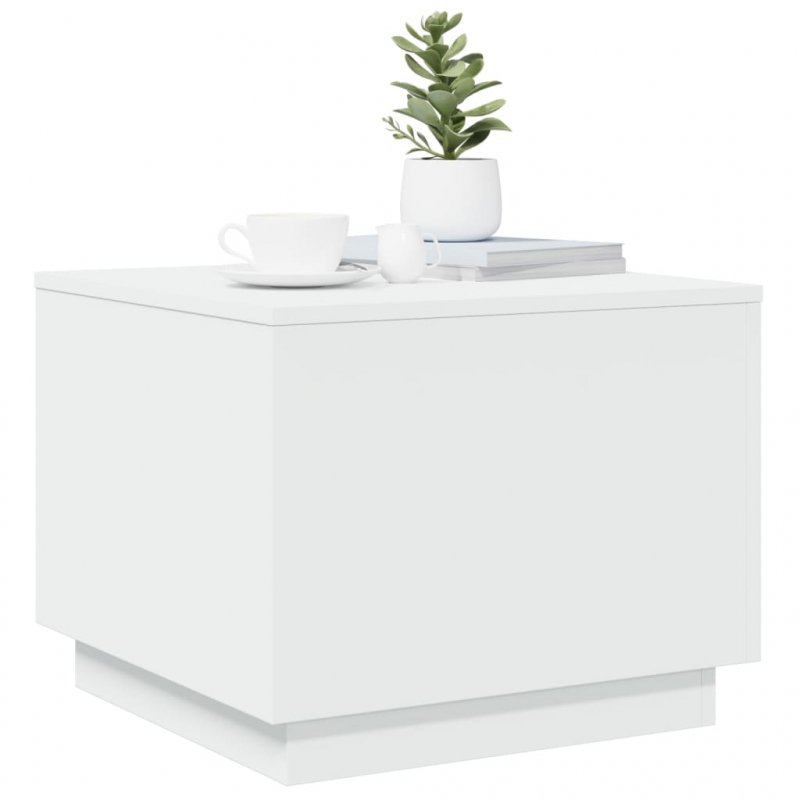 Dekoriere dein Wohnzimmer mit diesem modernen Couchtisch mit LED-Leuchten, der sich leicht mit Möbeln in jedem Stil kombinieren lässt. Langlebiges Material: Der Holzwerkstoff ist von außergewöhnlicher Qualität mit glatter Oberfläche und zeichnet sich außerdem durch Festigkeit, Stabilität und Widerstandsfähigkeit gegen Feuchtigkeit aus.Stabile Tischplatte: Die robuste Tischplatte dieses Couchtischs bietet einen sicheren Platz für Getränke, Vasen, Obstschalen oder Ornamente.RGB-LED-Leuchten: Der Couchtisch ist mit lebendigen RGB-LED-Leuchten ausgestattet. Mit verschiedenen anpassbaren Menüs kannst du die Farbe der Lichter mühelos wechseln und sie sogar auf automatische Anpassung einstellen. Die LED-Beleuchtung unterstreicht den modernen Look des Couchtisches und trägt zu seinem trendigen Design bei.Vielseitiges Design: Dieser Sofatisch wird unterschiedlichen Ansprüchen gerecht, denn er lässt sich auch als Beistelltisch, Teetisch oder Telefontisch verwenden. Gut zu wissen:Das Produkt verfügt über einen USB-Anschluss, für den eine zertifizierte 5V-USB-Stromquelle erforderlich ist (nicht im Lieferumfang enthalten).