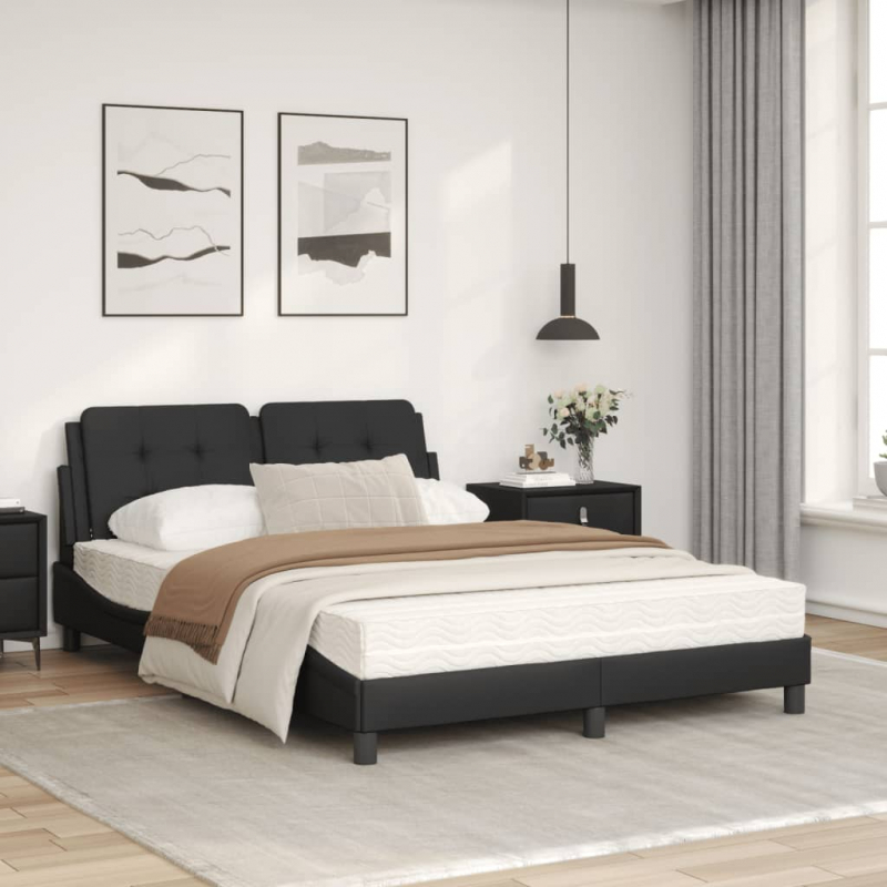 Bett mit Matratze Schwarz 120x200 cm Kunstleder