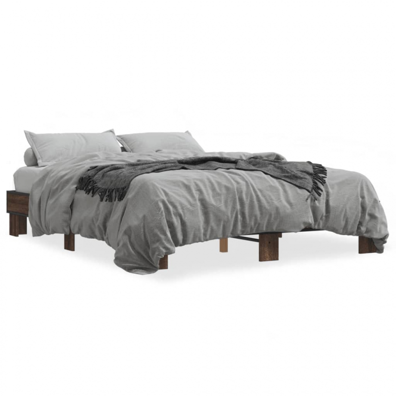 Bettgestell Braun Eichen-Optik 150x200 cm Holzwerkstoff Metall