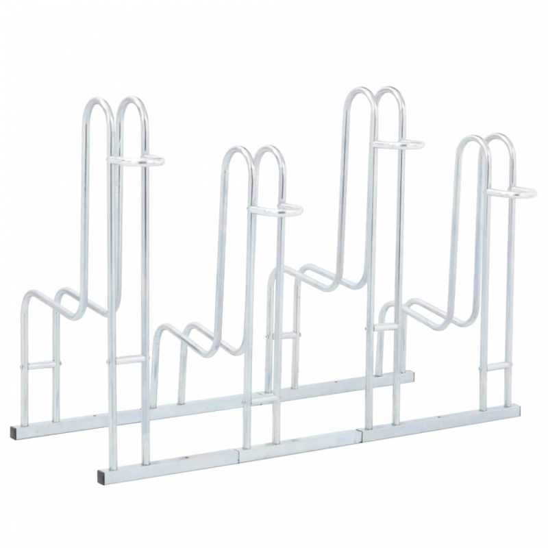 Verwende diesen Fahrradständer, um deine Fahrräder sicher und effizient abzustellen und so wertvollen Platz zu sparen.Robust und langlebig: Dieser Fahrradständer ist aus verzinktem Stahl gefertigt, wodurch er robust, korrosionsbeständig, langlebig und leicht ist und sich leicht transportieren lässt.Platzsparend: Dank der Bügel in verschiedenen Höhen bietet dieser Fahrradständer Platz für vier Fahrräder, ohne dass sich die Lenker ineinander verfangen, wodurch der verfügbare Platz auf effiziente Weise optimiert wird.Stabile Struktur: Mit den mitgelieferten Schrauben lässt sich der Fahrradständer sicher befestigen, um das Umkippen zu verhindern und die Stabilität zu gewährleisten. Die hohen Bügel des Ständers schützen die Felgen des Fahrrads. Daher ist dieser Ständer eine ideale Wahl für verschiedenen Mountainbikes, E-Bikes und mehr.Vielseitig einsetzbar: Der Fahrradständer eignet sich für Fahrräder mit einer Reifenbreite von bis zu 55 mm und lässt sich in verschiedenen Einrichtungen sowohl im Innen- als auch im Außenbereich einsetzen, sei es in Garagen, Lagerhallen, Schulen oder Geschäften.