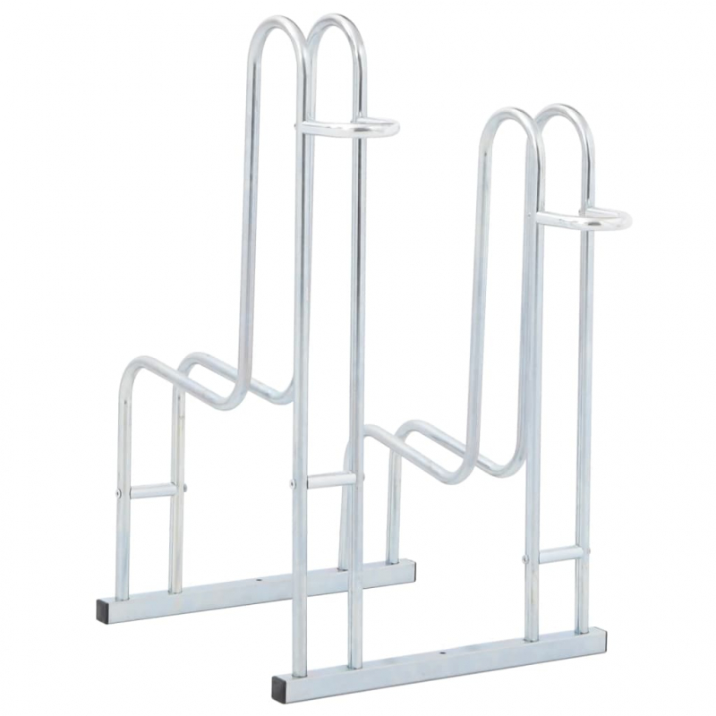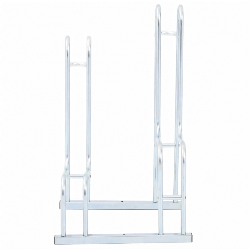 Verwende diesen Fahrradständer, um deine Fahrräder sicher und effizient abzustellen und so wertvollen Platz zu sparen.Robust und langlebig: Dieser Fahrradständer ist aus verzinktem Stahl gefertigt, wodurch er robust, korrosionsbeständig, langlebig und leicht ist und sich leicht transportieren lässt.Platzsparend: Dank der Bügel in verschiedenen Höhen bietet dieser Fahrradständer Platz für zwei Fahrräder, ohne dass sich die Lenker ineinander verfangen, wodurch der verfügbare Platz auf effiziente Weise optimiert wird.Stabile Struktur: Mit den mitgelieferten Schrauben lässt sich der Fahrradständer sicher befestigen, um das Umkippen zu verhindern und die Stabilität zu gewährleisten. Die hohen Bügel des Ständers schützen die Felgen des Fahrrads. Daher ist dieser Ständer eine ideale Wahl für verschiedenen Mountainbikes, E-Bikes und mehr.Vielseitig einsetzbar: Der Fahrradständer eignet sich für Fahrräder mit einer Reifenbreite von bis zu 55 mm und lässt sich in verschiedenen Einrichtungen sowohl im Innen- als auch im Außenbereich einsetzen, sei es in Garagen, Lagerhallen, Schulen oder Geschäften.