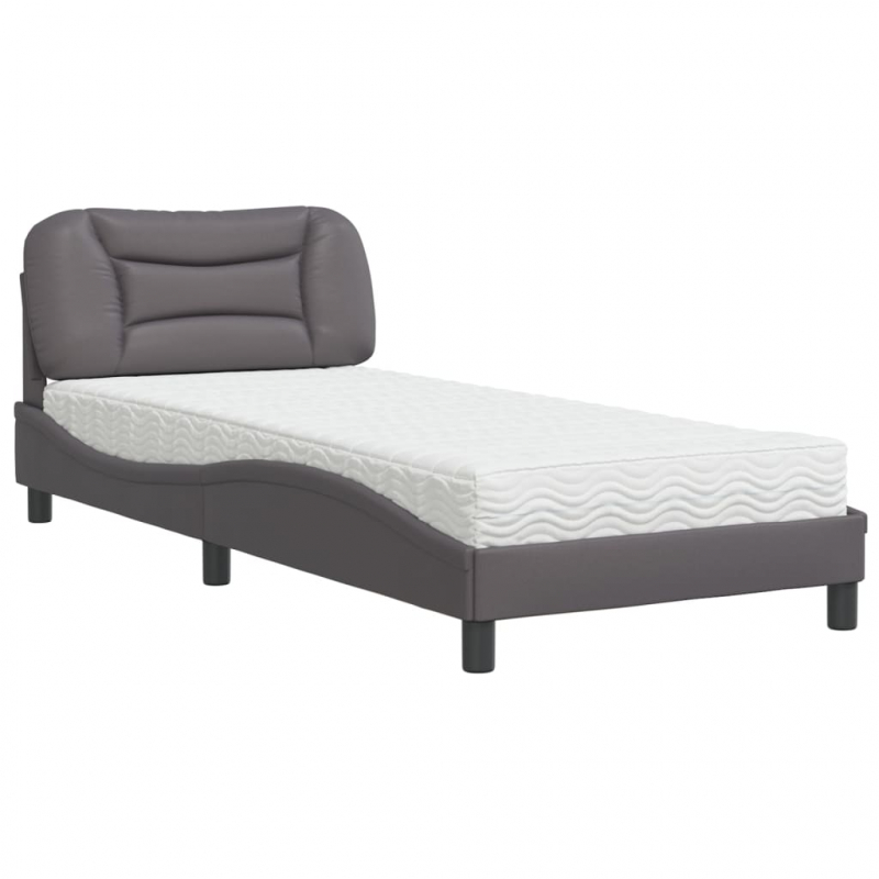 Bett mit Matratze Grau 90x200 cm Kunstleder