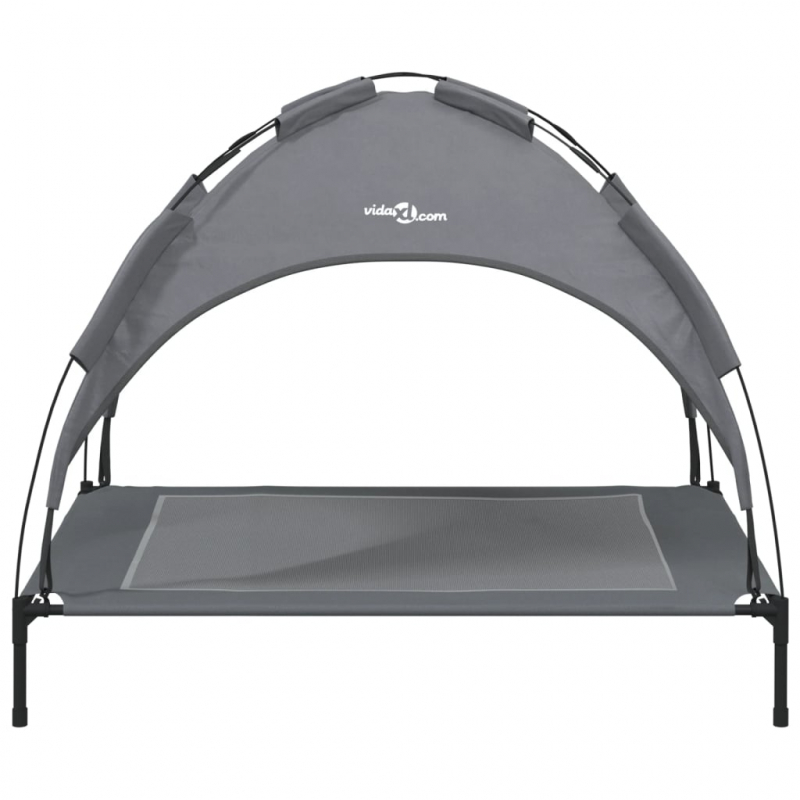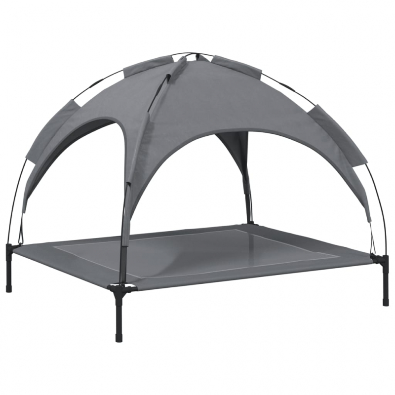 Diese Hundeliege mit Dach bietet deinem pelzigen Freund einen komfortablen und praktischen Schlafplatz. Langlebiges und atmungsaktives Material: Aus Oxford-Gewebe und Textilene gefertigt, ist das erhöhte Hundebett auf eine lange Lebensdauer ausgelegt und für den täglichen Einsatz im Außenbereich geeignet.Robustes und stabiles Gestell: Das Gestell aus pulverbeschichtetem Stahl verleiht der Hundeliege Robustheit und Stabilität. Zur hohen Stabilität tragen auch die vier rutschfesten Beine mit Gummikappen bei.Abnehmbares Dach: Das Hundebett ist mit einem abnehmbaren Dach versehen, das bei Bedarf Schatten spendet und Schutz bietet.Erhöhtes Design: Die Hundeliege liegt nicht direkt auf dem Boden, um deinen Hund vor Verschmutzungen und Feuchtigkeit zu schützen und ihm einen trockenen und angenehmen Schlafplatz zu bieten.Breite Anwendungen: Das Hundebett lässt sich sowohl im Innen- als auch im Außenbereich einsetzen. Er findet Platz in den eigenen vier Wänden, auf der Veranda, der Terrasse oder im Garten.