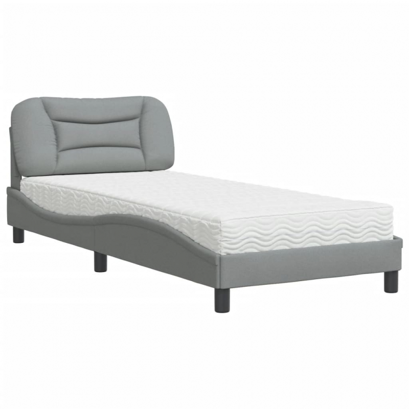 Bett mit Matratze Hellgrau 90x200 cm Stoff